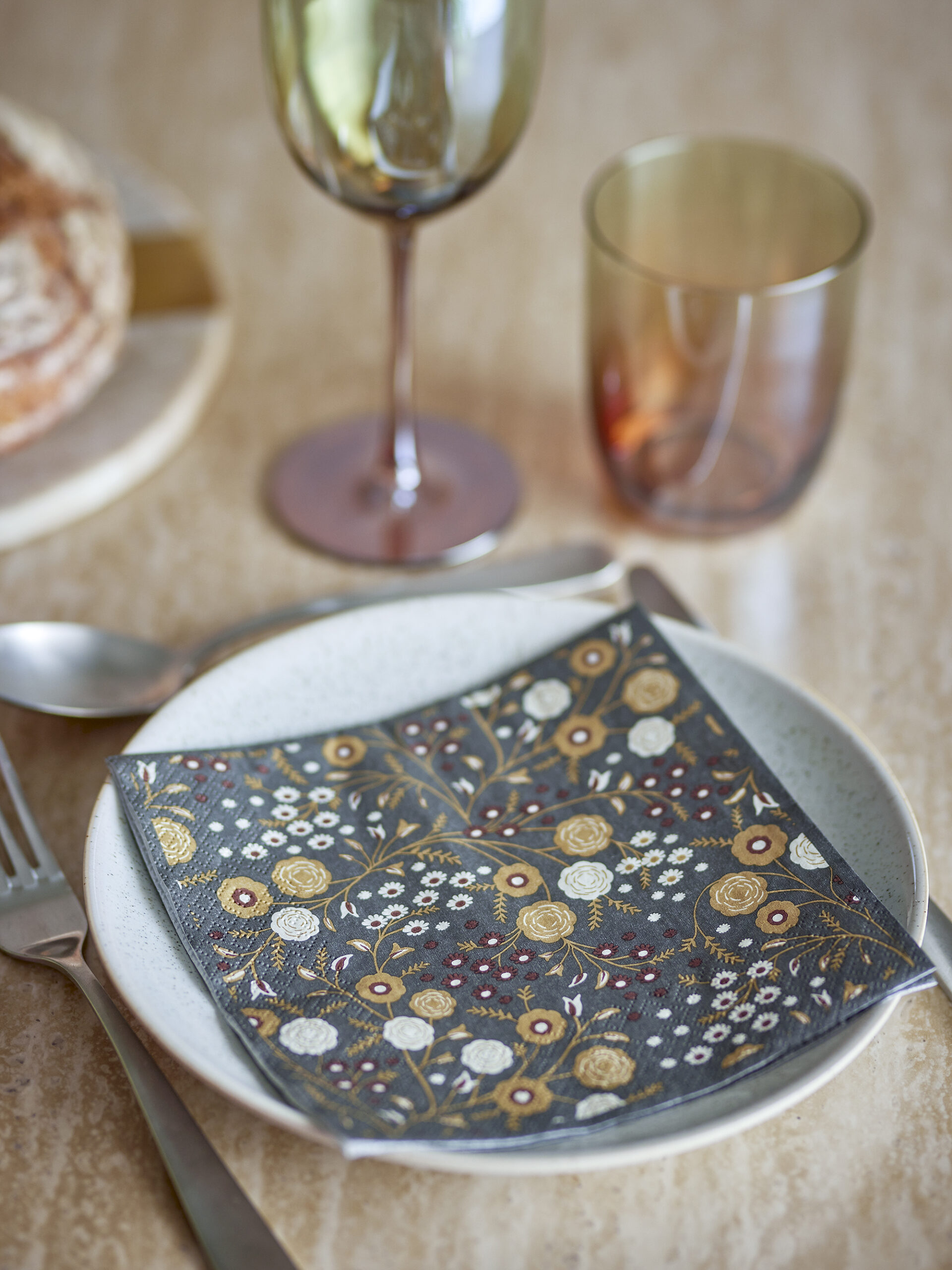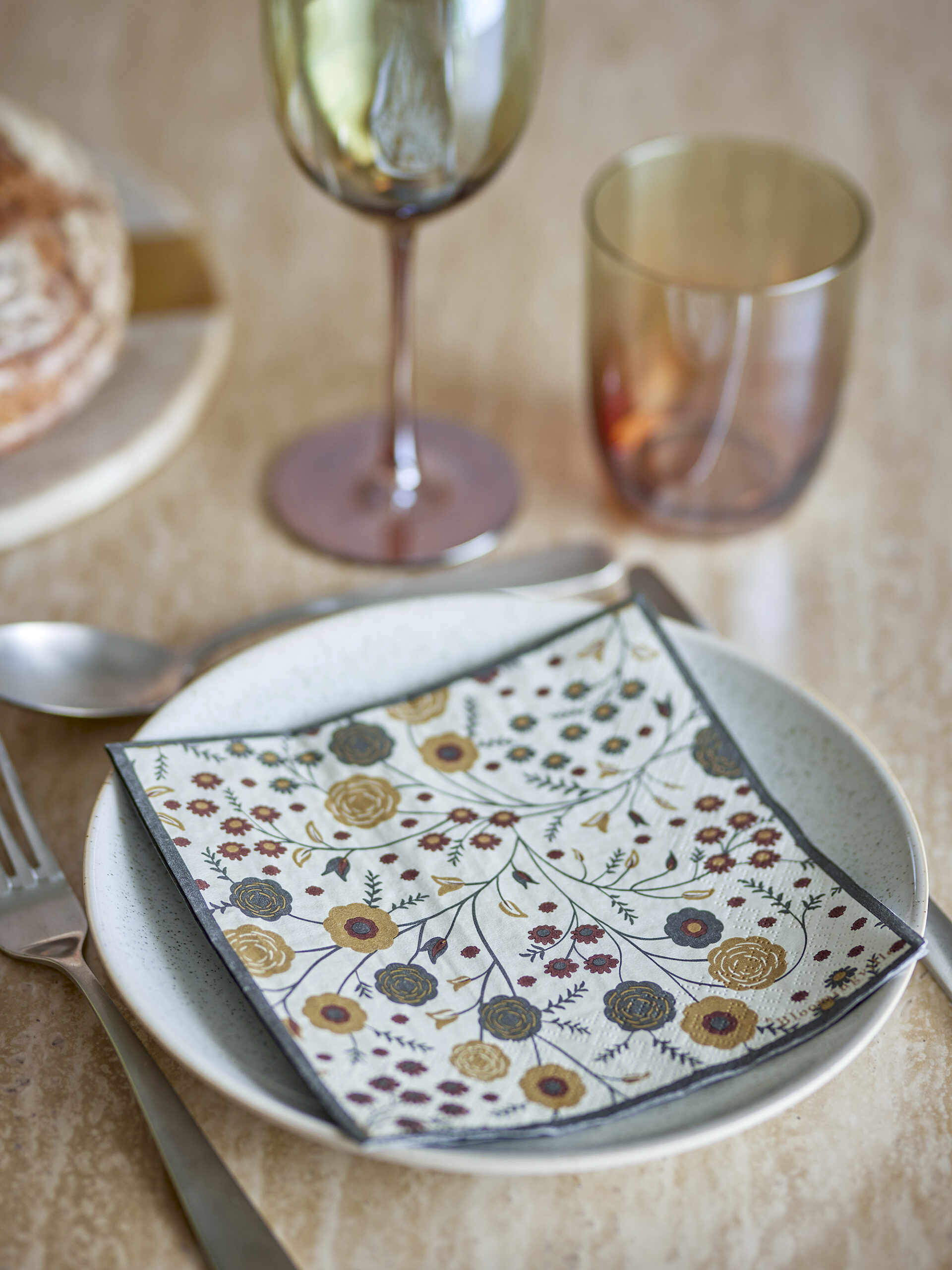 „Bloomingville“ servetėlės „Eydis“ pagamintos iš FSC sertifikuoto popieriaus ir parduodamos 20 vnt. pakuotėje. Detalus dizainas ir šilti atspalviai suteikia stalui jaukią atmosferą.