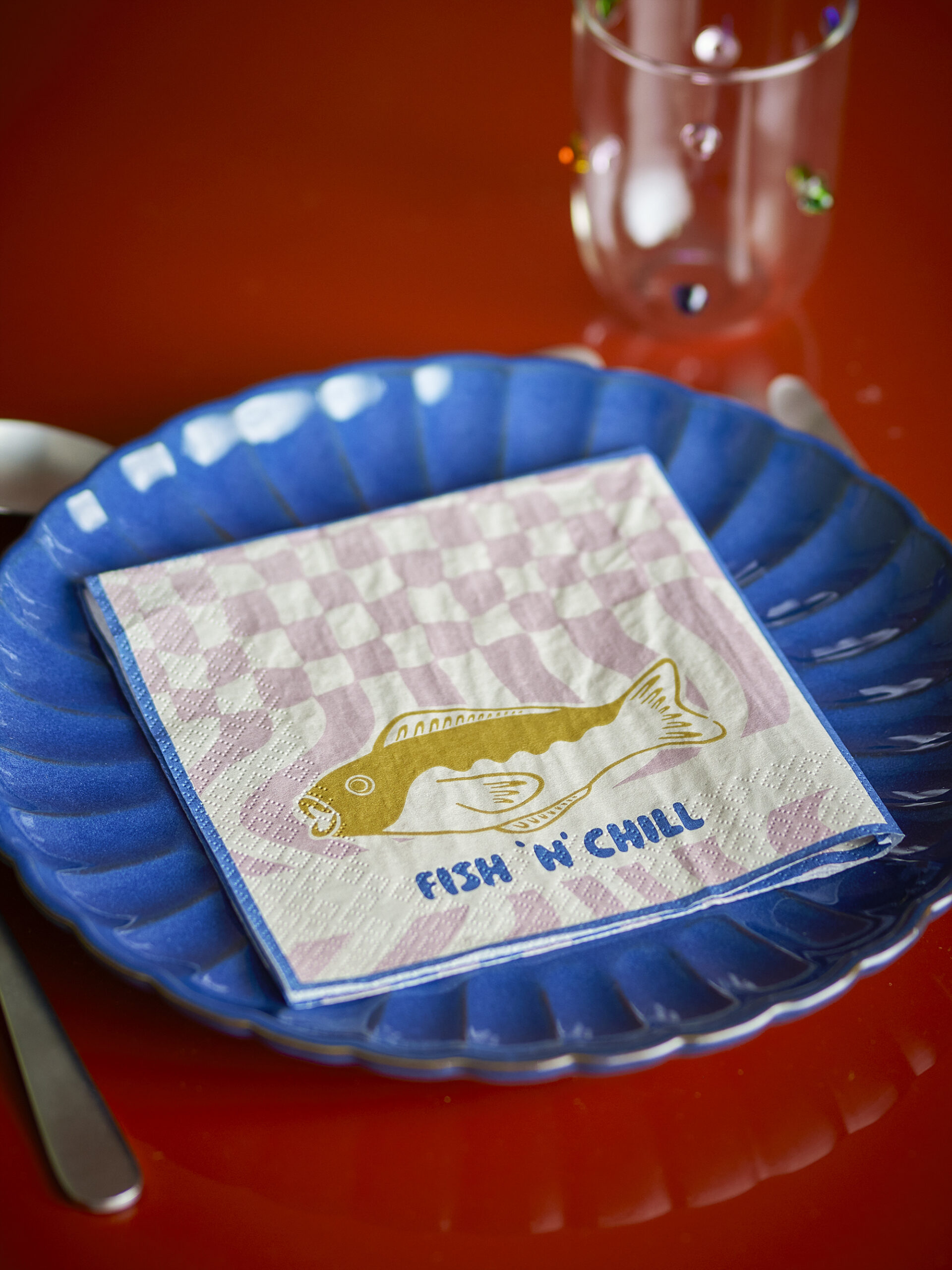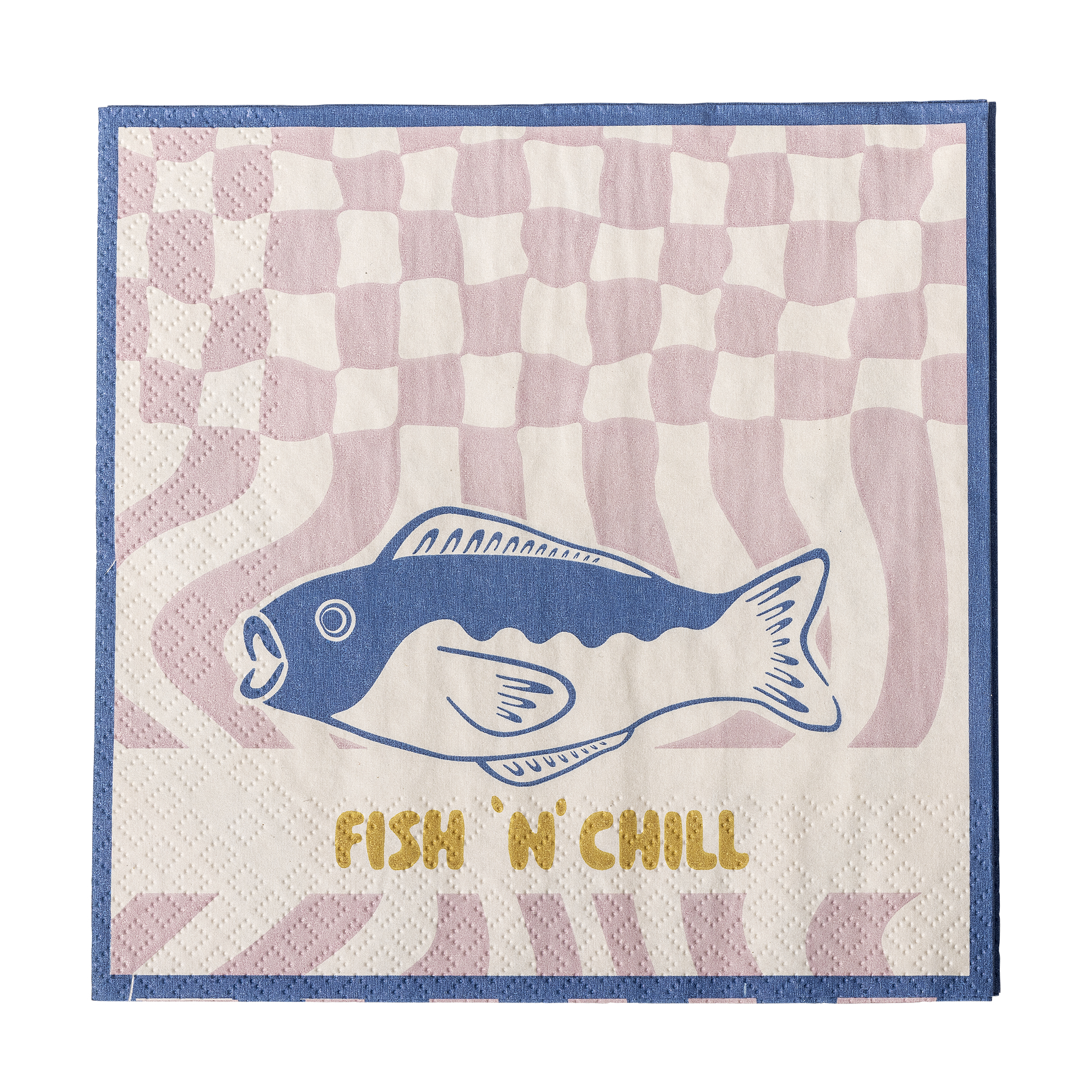 „Bloomingville“ „Remy“ servetėlės pagamintos iš FSC sertifikuoto popieriaus su grafiniais žuvų motyvais ir tekstu. Ryškios spalvos ir kūrybingas dizainas puikiai tinka bet kokiam stalui. 20 vnt. pakuotėje.